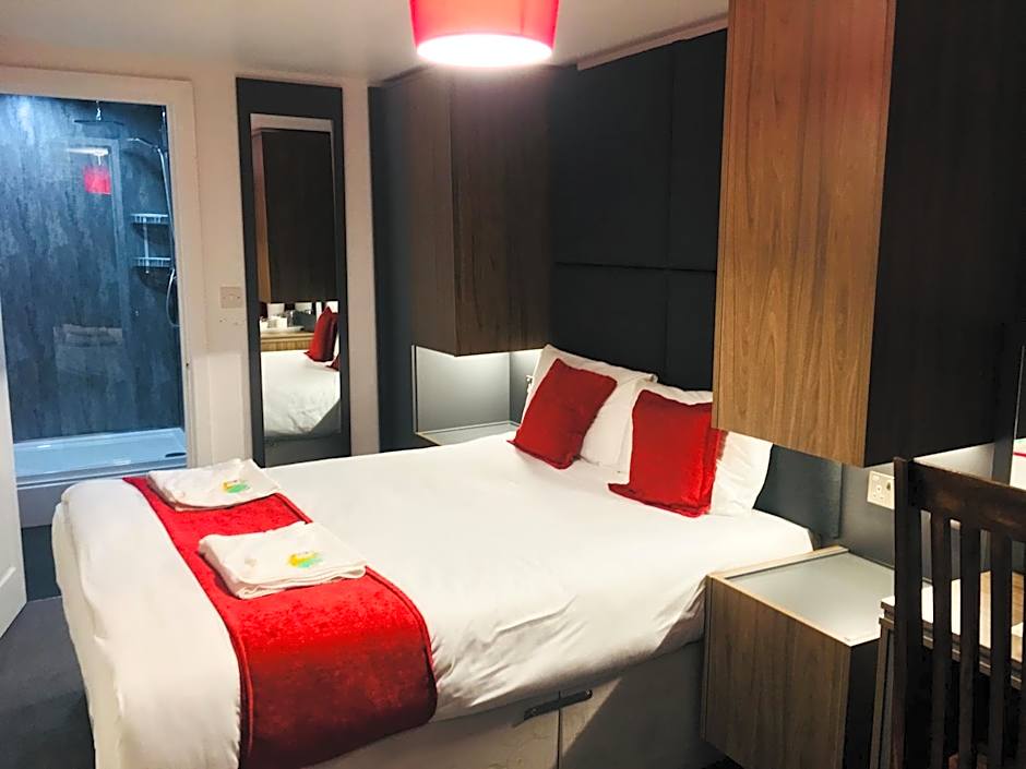 All double rooms with en-suite come with a double bed, desk, wardrobe, chest of drawers as well as tea and coffee making facilities. The room also has a TV that comes equipped with Freeview.